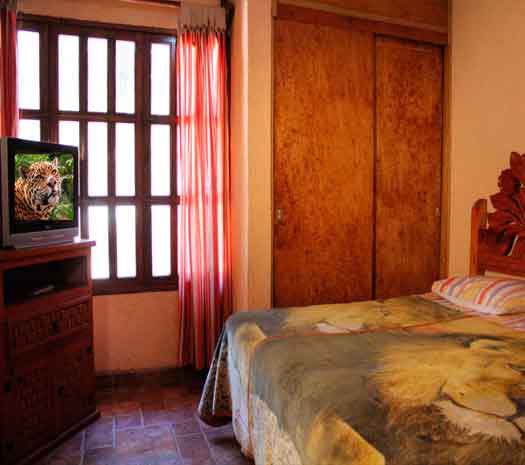 capacidad de 2 a 6 personas. 2 chimeneas; en la sala y recamara principal. 2 amplias habitaciones con t. v.