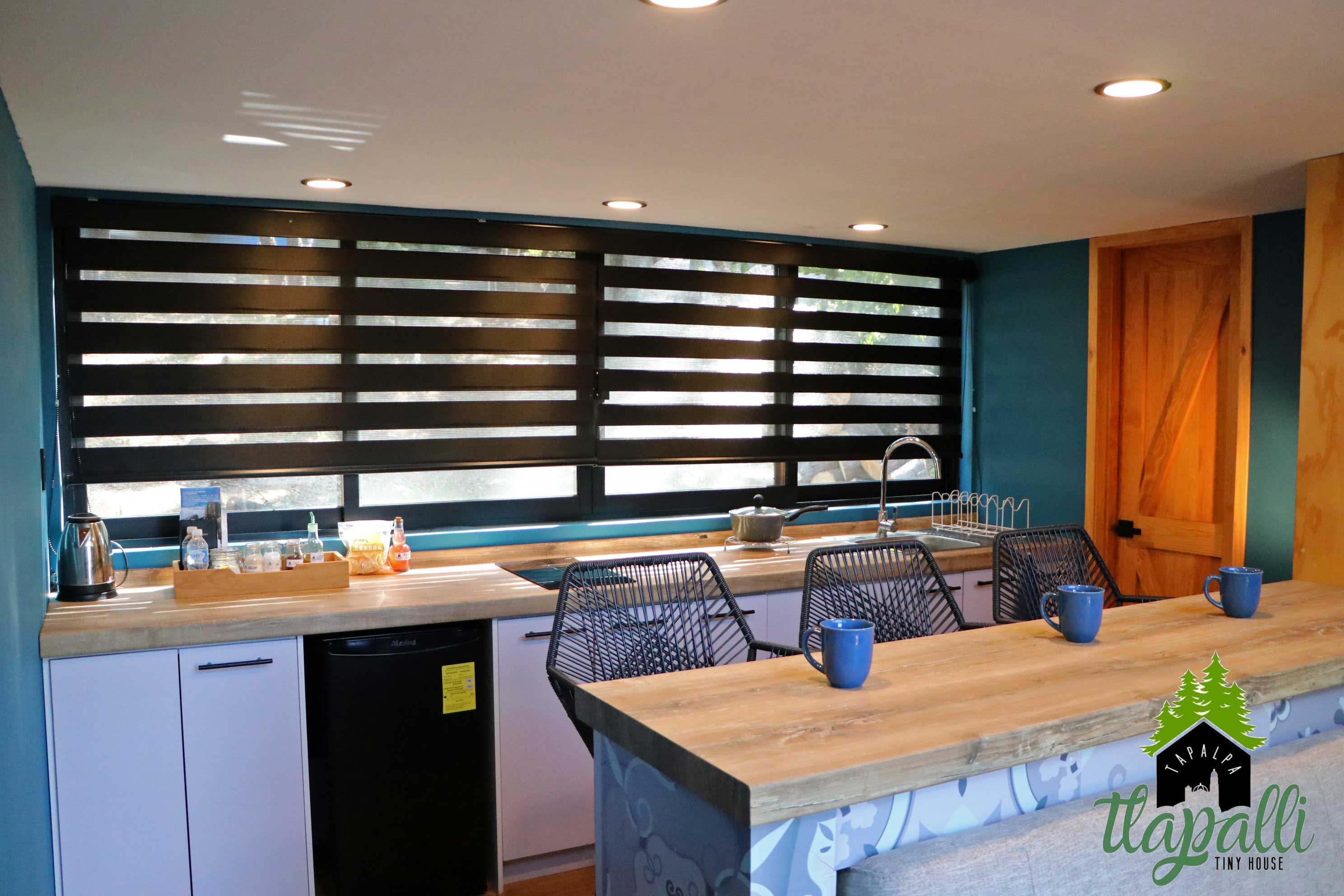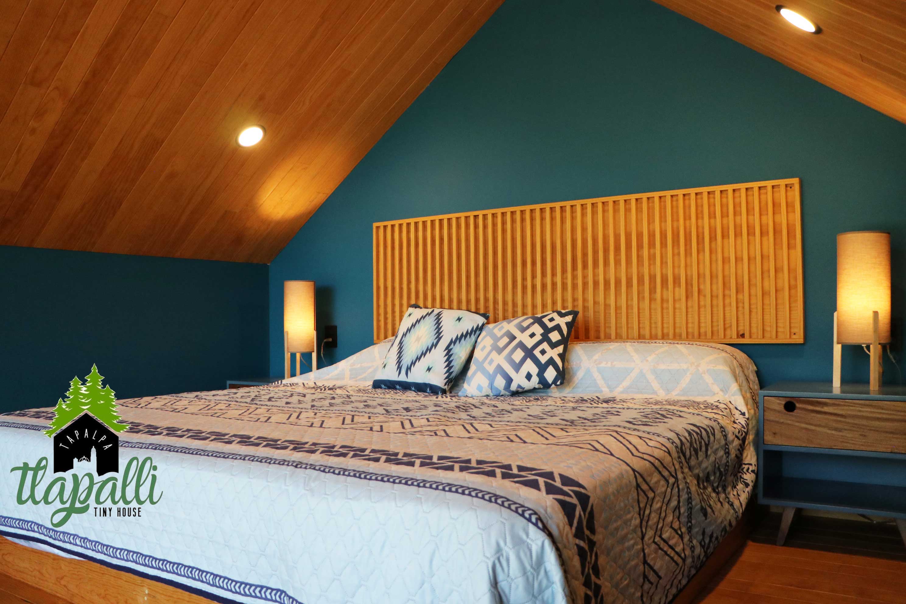 Cabaña Azul para 2 a 4 personas. Una recamara con cama Queen size. Sofá Cama, cocineta equipada, frigobar, baño completo, wifi, estacionamiento Terraza privada con asador.