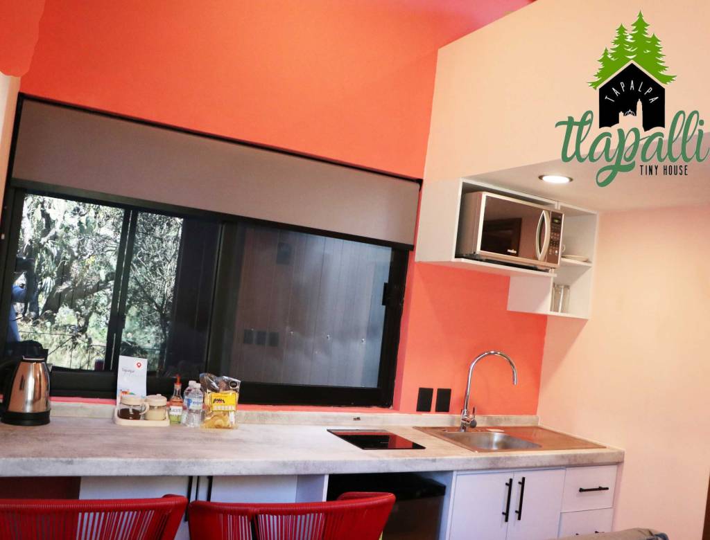 Cabaña Rosa Una recamara con cama Queen size. cocineta equipada, frigobar, baño completo, wifi, estacionamiento Terraza privada con asador.